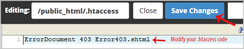 7. Make changes to your .htaccess file and then click on the "Save Changes" button.
