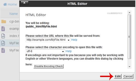 6. If the small "Code Editor" window is open, click on the "Edit" button, which will open a new window with options you can edit.