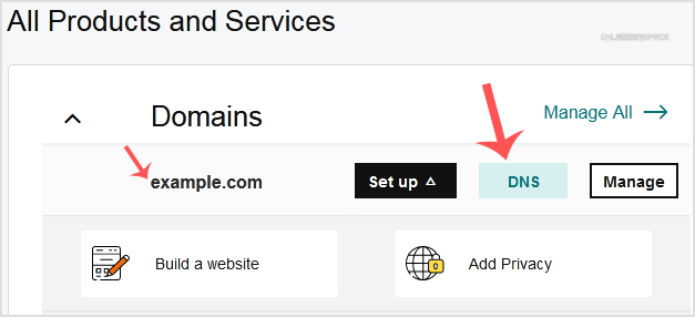 5. In Settings tab, Click on the "Manage" link under "Nameservers".