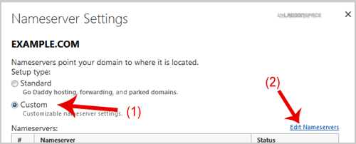 6. In "Nameservers Settings", select "Custom" and then click on the "Edit Nameservers" Link.