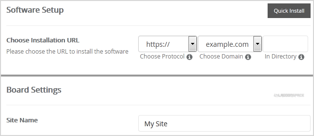 - In Directory: If you want to install this in a directory, for example example.com/forum, enter the directory name. Otherwise, leave this blank to install in your main domain example.com
