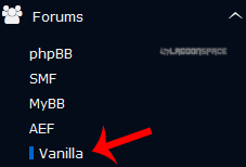 4. On the left side of your screen you should locate the "Forums" category. Click on it and then click on the "Vanilla" link that will appear.