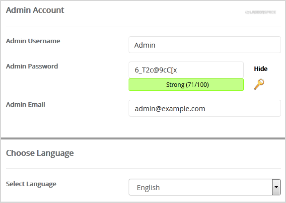 - Admin Email: Your e-mail address. (Useful for administrator account password reset, notification, etc)