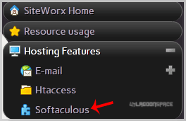 2. Under "SiteWorx Menu", click the "Hosting Features" menu item if it is not already open.