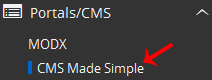 4. On the left side of your screen you should locate the "Portal/CMS" category. Click on it and then click on the "CMS Made Simple" link that will appear.