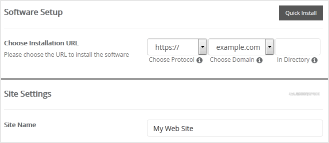 - In Directory: If you want to install this in a directory, for example example.com/directory, enter the directory name. Otherwise, leave this blank to install in your main domain example.com