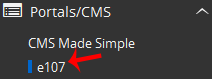 4. On the left side of your screen you should locate the "Portal/CMS" category. Click on it and then click on the "e107" link that will appear.