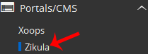 4. On the left side of your screen you should locate the "Portal/CMS" category. Click on it and then click on the "Zikula" link that will appear.