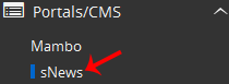 4. On the left side of your screen you should locate the "Portal/CMS" category. Click on it and then click on the "sNews" link that will appear.