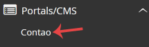 4. On the left side of your screen you should locate the "Portal/CMS" category. Click on it and then click on the "Contao" link that will appear.