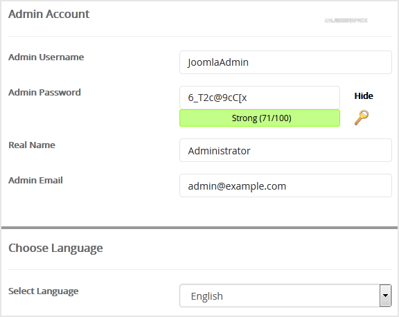 - Admin Username: Your new Bolt username (for security reason do not use the "Administrator" or the "Admin" username.)