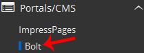4. On the left side of your screen you should locate the "Portal/CMS" category. Click on it and then click on the "Bolt" link that will appear.