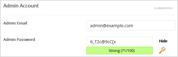 - Admin Username: Your new Fork username (for security reason do not use the "Administrator" or the "Admin" username.)