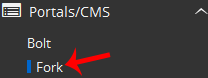 4. On the left side of your screen you should locate the "Portal/CMS" category. Click on it and then click on the "Fork" link that will appear.