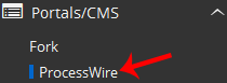 4. On the left side of your screen you should locate the "Portal/CMS" category. Click on it and then click on the "ProcessWire" link that will appear.