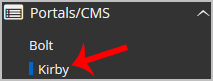 4. On the left side of your screen you should locate the "Portal/CMS" category. Click on it and then click on the "Kirby" link that will appear.