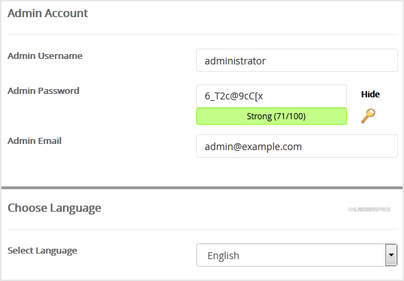 - Admin Username: Your new Microweber username (for security reason do not use the "Administrator" or the "Admin" username.)