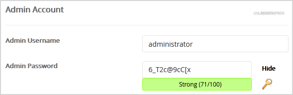 - Admin Username: Your new Pimcore username (for security reason do not use the "Administrator" or the "Admin" username.)