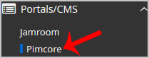 4. On the left side of your screen you should locate the "Portal/CMS" category. Click on it and then click on the "Pimcore" link that will appear.