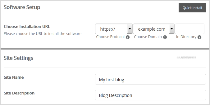 • In Directory: If you want to install this in a directory, for example example.com/directory, enter the directory name. Otherwise, leave this blank to install in your main domain example.com
