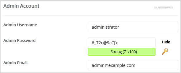 • Admin Username: Your new Anchor username (for security reason do not use the "Administrator" or the "Admin" username.)