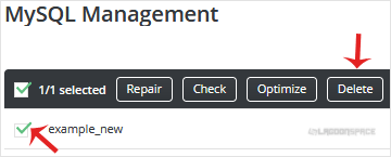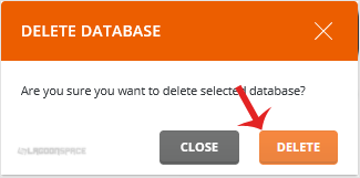 4. Click the Delete button. A new window will open, asking you for confirmation. Click again on Delete to remove the database.