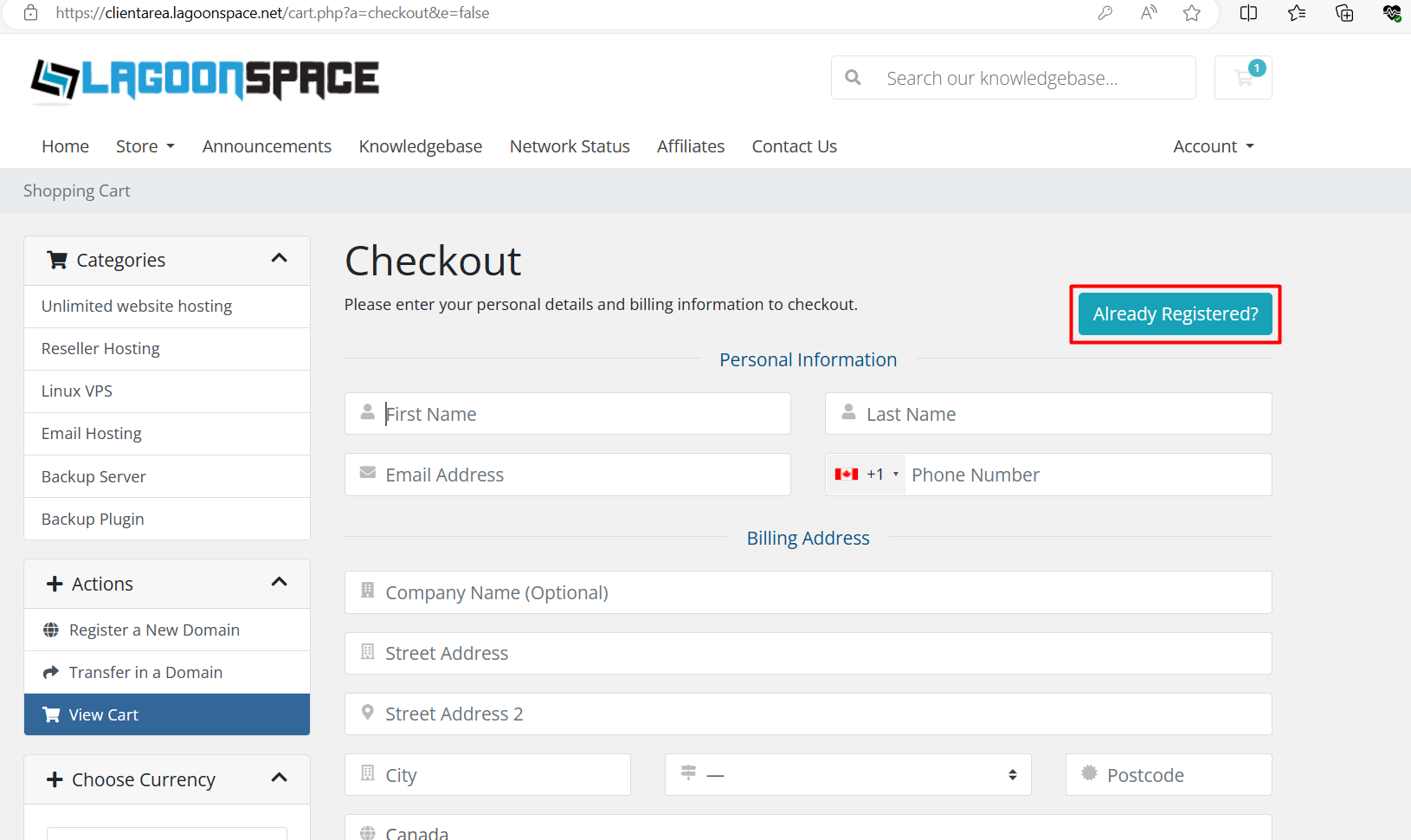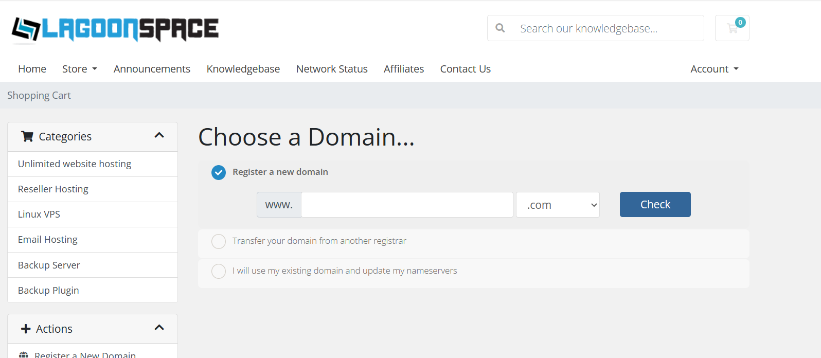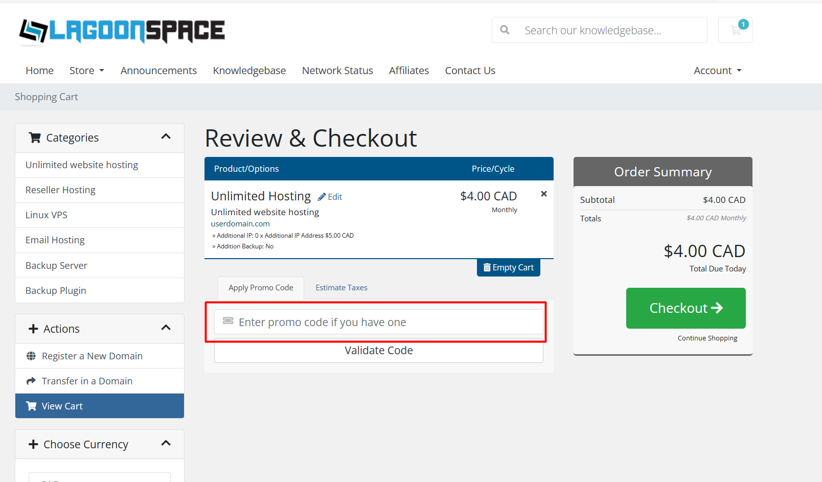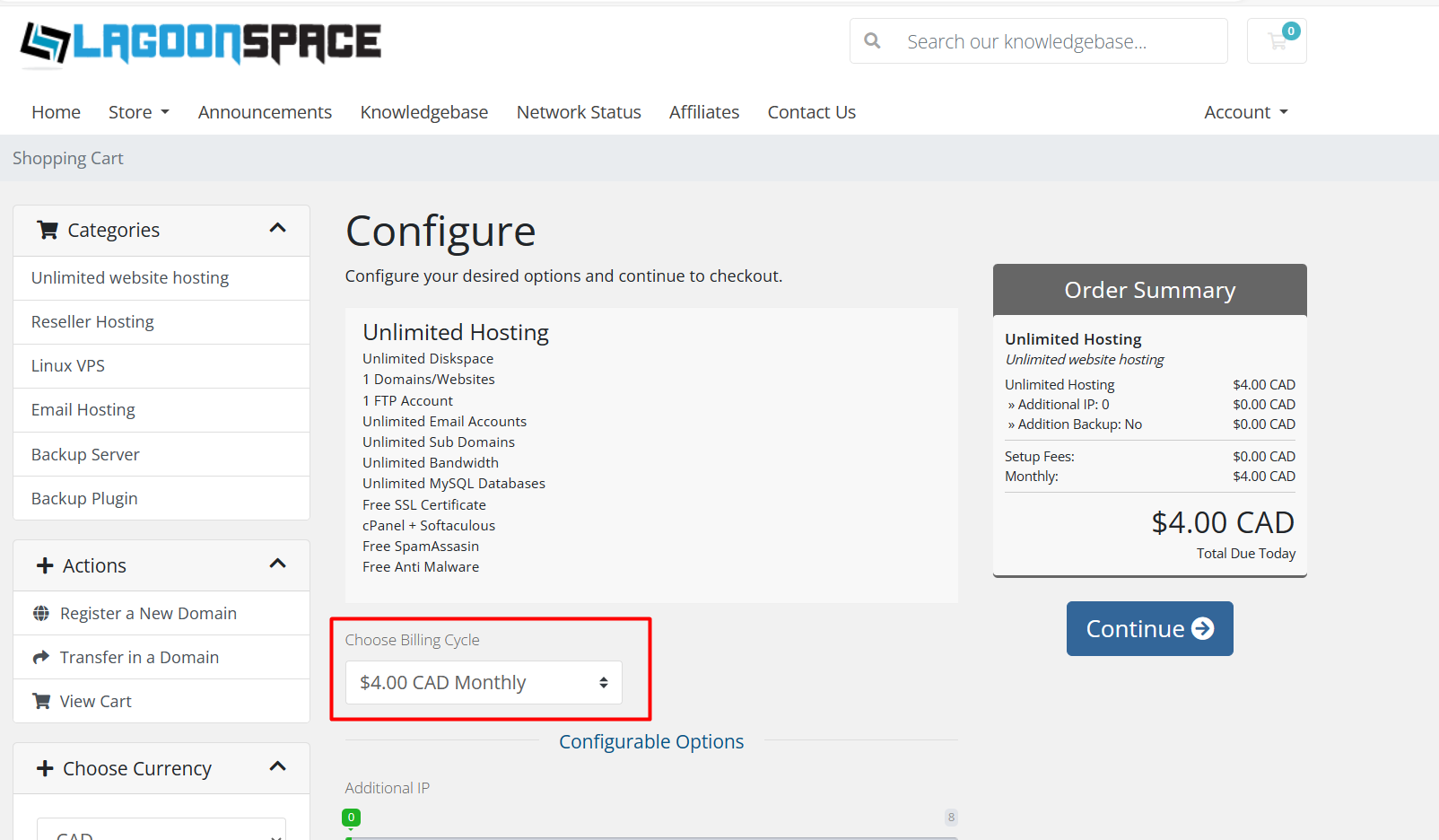 This tutorial gives an overview on how to create orders for new products or services on LagoonSpace Web Solutions ordering platform. For this example we have selected our "Unlimited Hosting" plan to demonstrate the process.