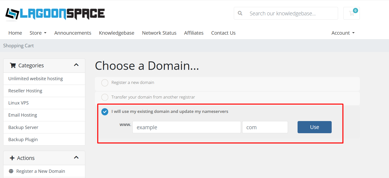 - If you to use your own domain name which you already have registered somewhere else, use third option "I will use my existing domain"